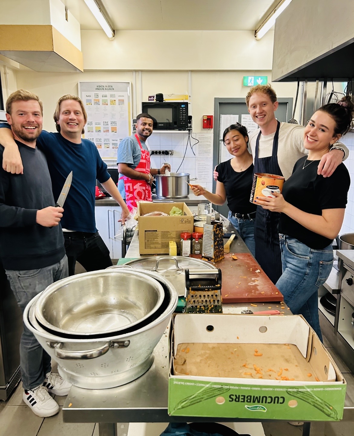 With a group of 6 people you are cooking for 55 homeless at the Stoelenproject in Amsterdam.